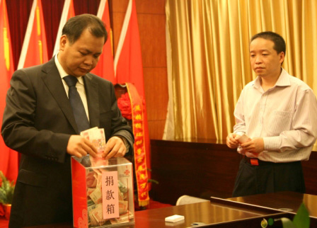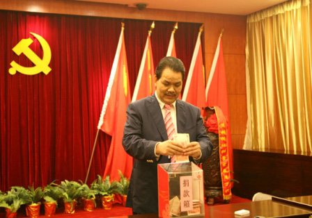 集團(tuán)董事局主席、總裁勞建銘為員工捐款。