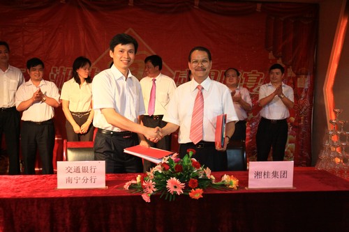晚宴上,湘桂集團和交通銀行南寧分行簽訂戰略合作協議