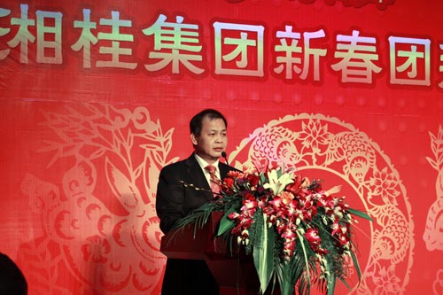 董事局主席、總裁勞建銘在團拜會上做了熱情洋溢的新春祝辭。勞建銘說,剛剛過去的2010年是湘桂集團發展史上的又一個里程碑,是集團取得新突破,實現大發展,成就新輝煌的一年。湘桂集團在各級黨委、政府支持下,在社會各界大力幫助下,各項事業均取得了可喜的進步。勞建銘代表集團董事局及集團公司,對全體員工為集團2011年所作出的貢獻表示衷心的感謝。
