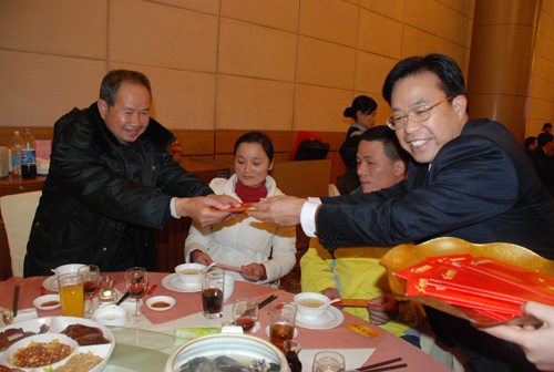 集團董事黃建軍為員工家屬發紅包。