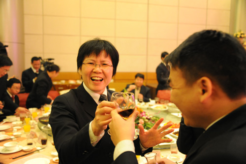 勞建銘主席高屋建瓴、振奮人心的致辭,為湘桂人確立了發展的美好藍圖,吹響了戰斗的號角,大家紛紛舉起手中的酒杯,為湘桂新的一年獲得更輝煌的成就干杯。