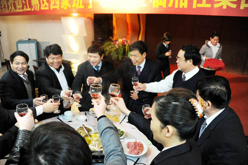 崇左市江州區領導與集團領導共同舉杯慶賀新春。