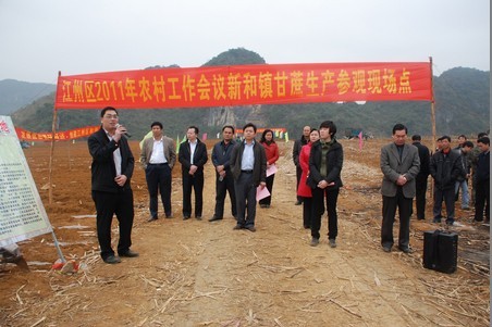 2月11日,崇左市江州區區長秦昆率參加該區2011年農村工作會議各級黨政領導和各制糖企業代表到湘桂公司孔香屯糖料蔗示范基地進行參觀考察。湘桂公司常務副總經理莫江陪同考察。