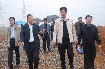 圖為崇左市副市長張鴻(中)在檢查指導(dǎo)工作。