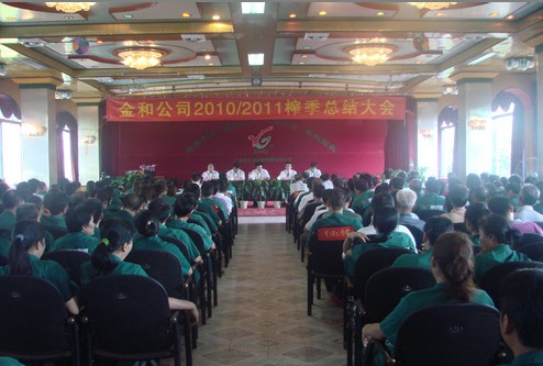 金和公司總經理羅成武在會上作年度總結報告。他充分肯定了公司全體員工在2010/2011榨季所作出的努力及貢獻。他說,2010/2011榨季期間,各部門、車間在集團董事局提出“搶榨蔗、多榨蔗、多產糖、產好糖”的指導思想下,緊緊圍繞集團公司的目標任務,充分發揮主觀能動性,團結一致,不屈不撓,克服重重困難,超額完成集團下達的各項任務指標,取得新的突破,整個榨季未發生一起重大安全事故,榨蔗總量較上榨季小幅提高,蔗渣打包率等其他指標較上榨季都有所提高。