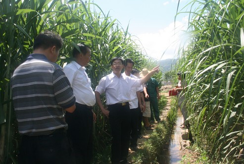 圖為靈山縣副縣長韋大器(中)到武利公司甘蔗示范點檢查調研。