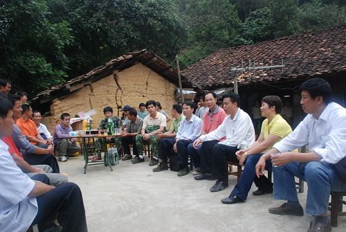 在咪岜屯,考察組聽取了屯支書農志能關于咪岜屯甘蔗種植情況的介紹。他說,咪岜屯甘蔗資源豐富、產量可觀,但由于山高路險,道路難行,發展甘蔗種植較為困難。