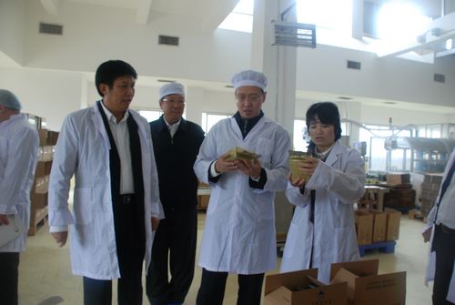 林念修一行(中)深入到酵母公司廠房考察調研。