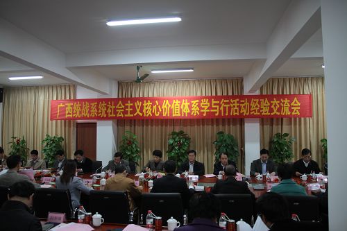 廣西統(tǒng)戰(zhàn)系統(tǒng)社會主義核心價值體系學(xué)與行活動經(jīng)驗交流會現(xiàn)場。