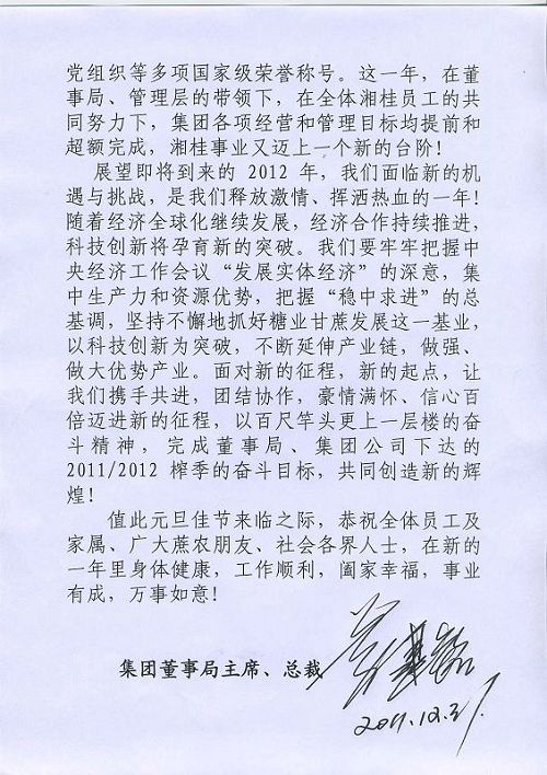 來源:廣西湘桂集團/廣西湘桂糖業集團/廣西湘桂糖業公司       發布日期:2011-12-31 17:26:11