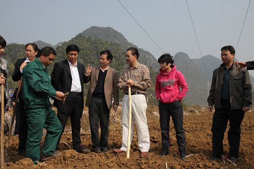 隨后,勞建銘一行深入田間地頭,與蔗農進行了親切交談,現場調研蔗區甘蔗種植情況。勞建銘不僅手持鐵鍬給蔗種培土,還親自指導農民甘蔗種植技術,并對調研過程中發現的問題提出了整改措施。勞建銘強調,湘桂公司大新蔗區甘蔗種植指揮部必須落實好各項優惠政策,不允許出現坑農、傷農的現象,同時要繼續加大蔗區扶持力度和加強種蔗技術指導,幫助當地蔗農實現增產增收,早日脫貧致富。