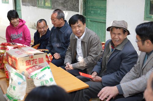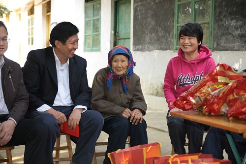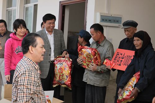 集團(tuán)董事局主席、總裁勞建銘(前左一)慰問孤寡老人、五保戶。