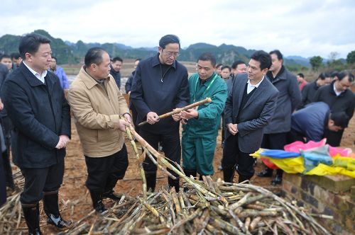2月3日,自治區(qū)副主席陳章良一行在崇左市市長黃克、副市長雷海良、江州區(qū)區(qū)委書記邱明宏、區(qū)長陳光恩等的陪同下,到湘桂公司孔香屯甘蔗種植示范基地調(diào)研指導(dǎo)。