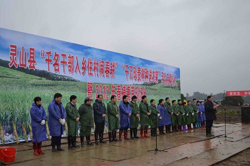 潘雪紅宣布靈山縣“千名干部入鄉住村鬧春耕”、“千萬珍貴樹種送農家”活動暨2012年春植糖蔗現場會正式開始。蘇英權發表講話,他指出,春雨貴如油,各級干部要抓住當前雨水充足、土地濕潤松軟的大好時機,深入基層,動員廣大農戶積極投入春耕,大力發展農業生產。特別是糖料蔗,其作為靈山縣重要的經濟農作物之一,對促進靈山縣經濟建設,落實“三農”工程,幫助廣大農戶發家致富起著較為重要的作用,要發展好、種植好;參會的領導干部,尤其是鄉鎮、村委基層干部,要全心全意幫助和支持企業發展,加大宣傳動員力度,鼓勵和幫扶蔗農朋友發展糖料蔗種植,努力實現2012年度全縣的種植任務。