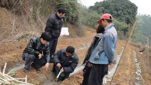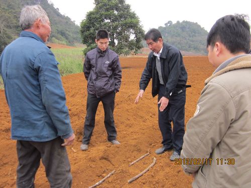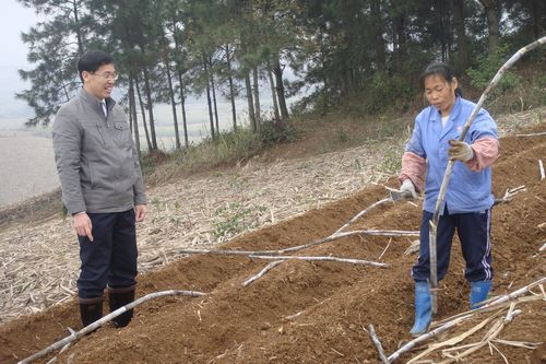 集團監事會監事張守輝(左一)指導農民種蔗。
