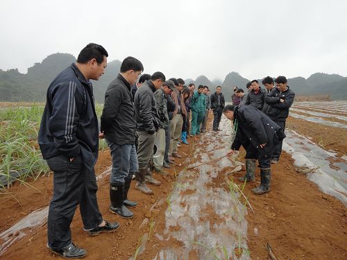 3月2日,為使廣大蔗農(nóng)進(jìn)一步掌握甘蔗種植的科學(xué)管理技術(shù),促進(jìn)蔗農(nóng)增產(chǎn)增收,湘桂集團(tuán)下屬子公司廣西崇左市湘桂糖業(yè)有限公司(以下簡稱“湘桂公司”)組織公司蔗區(qū)各村屯甘蔗種植大戶代表40多人到孔香屯甘蔗種植示范基地參觀學(xué)習(xí)甘蔗種植管理新技術(shù)。