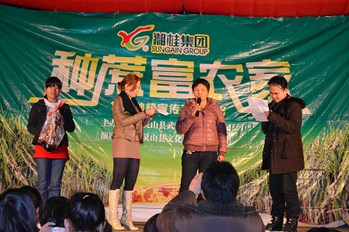 為進一步加大公司的甘蔗種植宣傳力度,有效推進公司2012年春植蔗的發展工作,3月7日晚,湘桂集團下屬子公司靈山縣武利制糖有限公司(以下簡稱“武利公司”)聯合靈山縣文化館江南曲藝團在靈山縣大蘆村舉辦了以“種蔗富農家”為主題的甘蔗種植宣傳文藝演出,并取得了良好效果。