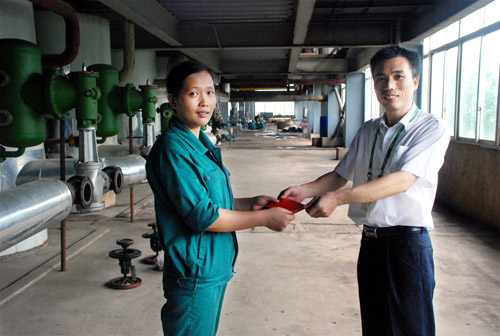 7月21日是公司收假上班第一天,黃春梅等公司領導便深入一線車間慰問了黃能成、李潔洪等困難黨員并送上慰問金。慰問中,黃春梅與他們親切交談,仔細詢問收假上班及生活情況,感謝他們為公司發展所做的貢獻,希望他們今后一如既往的支持公司發展,腳踏實地的做好本職工作,努力做出更大貢獻。黃能成、李潔洪等困難黨員紛紛表示,非常感謝公司的關懷,他們將不辜負公司對他們的期望,繼續為公司貢獻自己的綿薄之力。