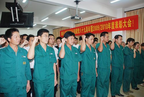 圖為集團(tuán)員工在總結(jié)表彰大會期間入黨宣誓。