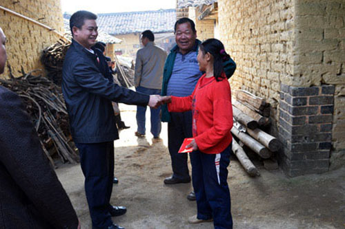 靈山湘桂公司生產副總經理王文達給蔗農送上新春慰問金。