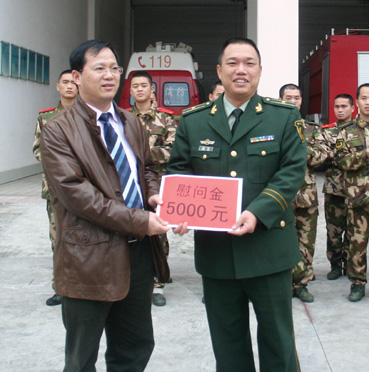 武警中隊相關領導也向與會人員介紹了部隊在09年開展的部隊建設、訓練、執勤等方面的情況,總結了雙方在軍民共建工作上取得的可喜成績。最后,蒙子函主席代表集團公司向武警中隊、武警消防中隊送上慰問金和慰問品。