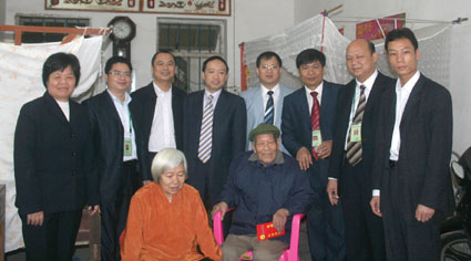 公司慰問團慰問武利街老黨員陳載(前右)。
