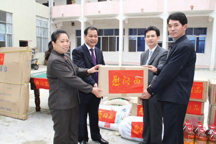 2月5日,集團董事、副總裁鄧豪,集團董事黃建軍,集團辦公室副主任徐瑞芬,湘桂房地產公司總經理賴小丁,集團監事、湘桂房地產公司副總經理姚禮信一行,在靈山縣副縣長黃為政的帶領下,前往靈山縣光榮院、福利院及竹山園、長崗嶺村委等地進行“迎新春、送溫暖、獻愛心”慰問活動,為福利院的老人及村委的貧困老人送去節日的關懷和慰問。