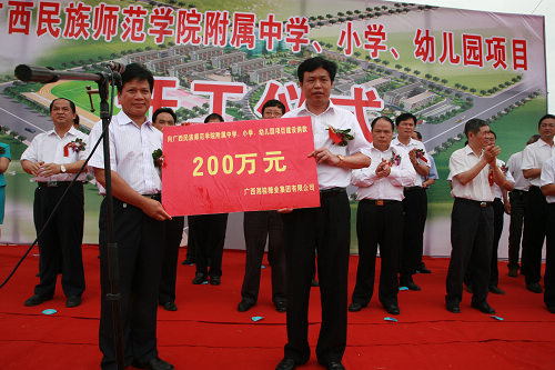 為廣西民族師范學院附屬中學、小學及幼兒園捐資200萬元建校